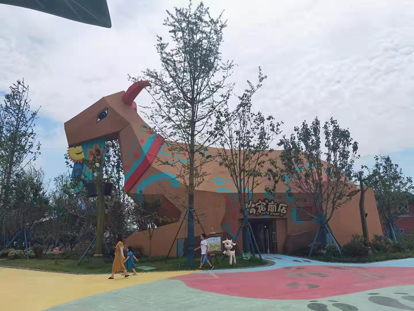 山羊造型的动物商店,有东西售卖,一看就很吸引小朋友的光顾。